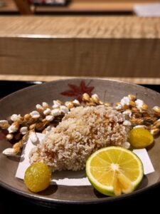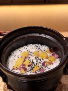 しめのご飯はサツマイモの炊き込みご飯。