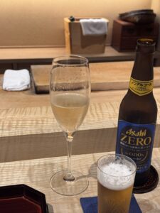 まずはノンアルで喉を潤す。